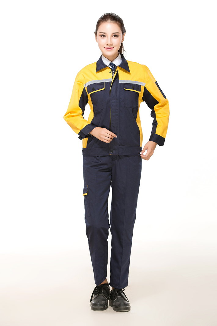 淮南工作服定做款式藏青色拼黃色長袖工作服套裝GZ-8015