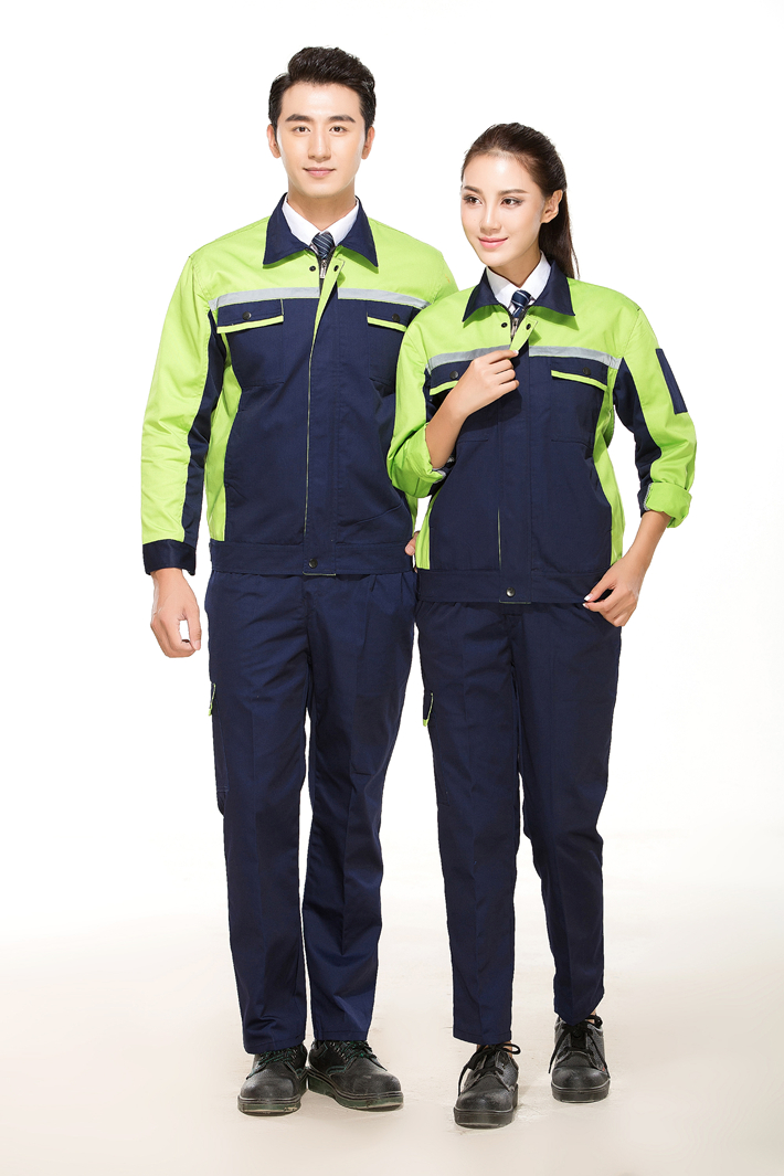 淮南反光條工作服定做款式藏青色拼綠色工作服長袖套裝GZ-8016