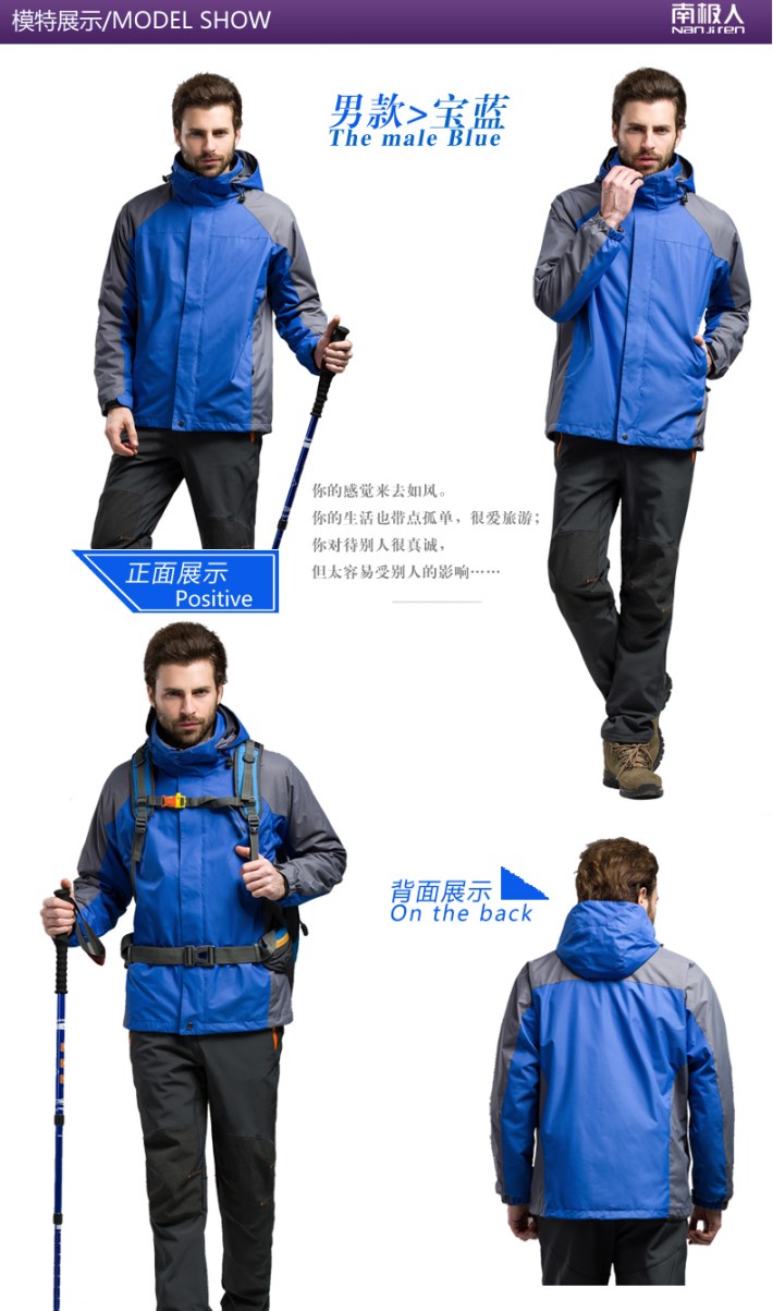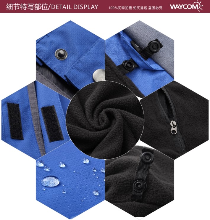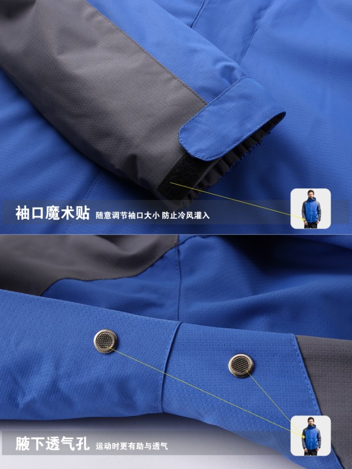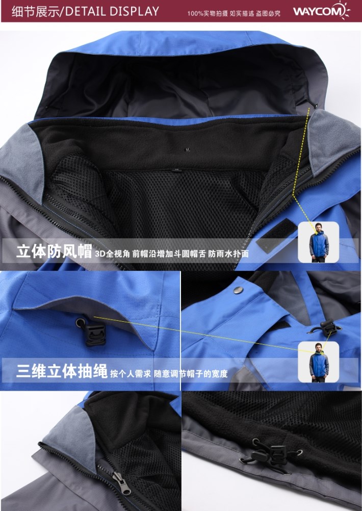 生產工藝:采用WEI-TEX防水透濕科技、三合一可拆卸內膽、立體裁剪