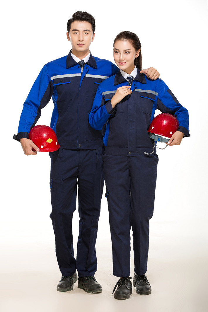 滌棉藏青色拼藍色反光條工作服套裝GZ-8011