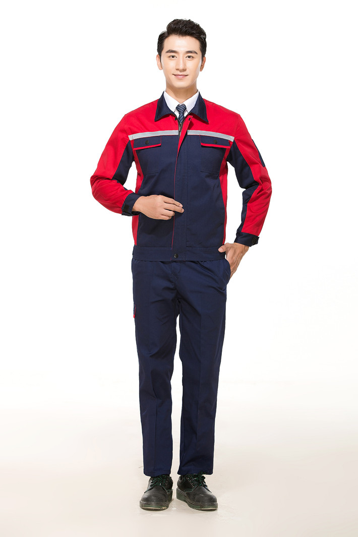 滌棉藏青色色拼紅色工作服套裝GZ-8012
