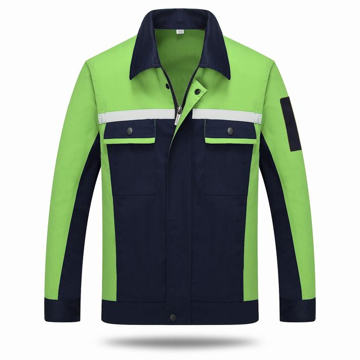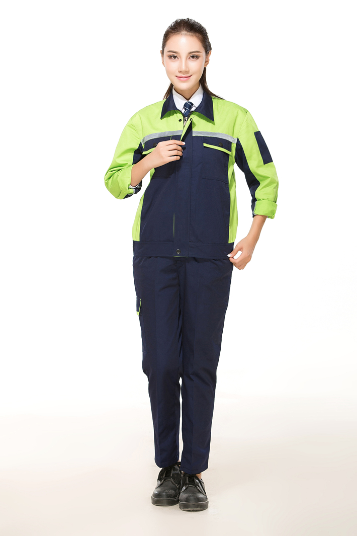 滌棉藏青色拼綠色反光條工作服長袖套裝GZ-8016