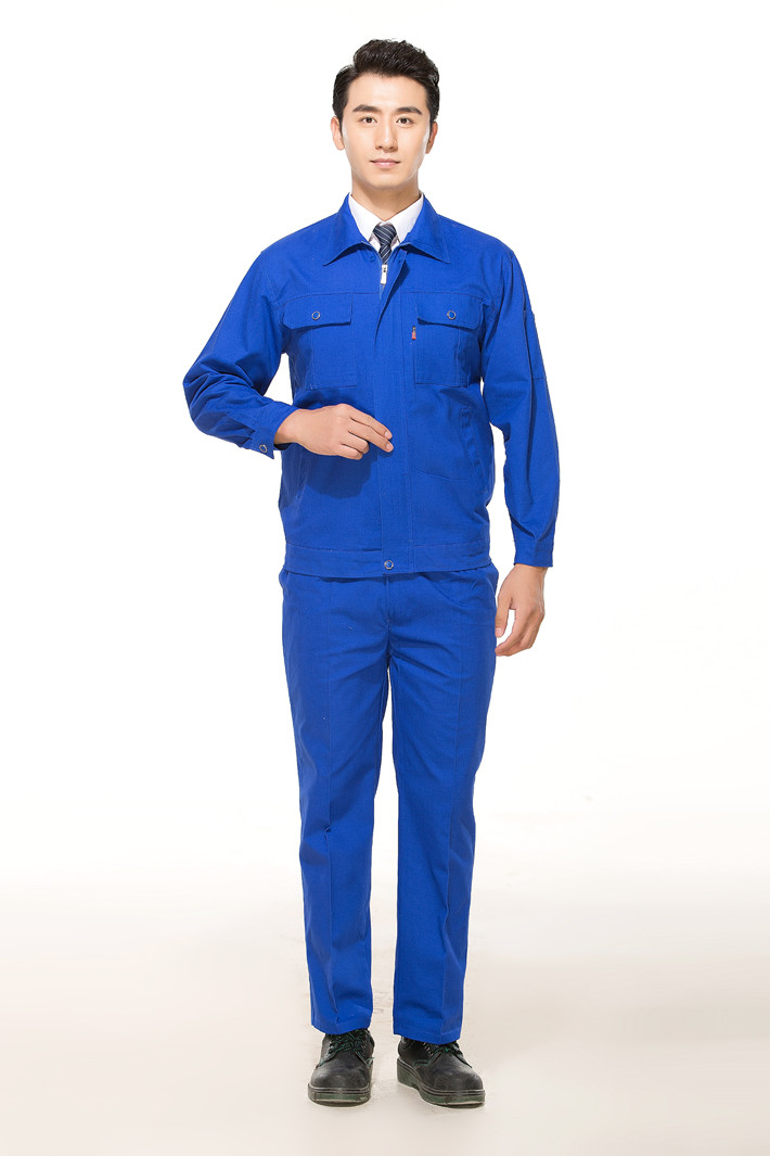 全棉紗卡藍(lán)色拉鏈?zhǔn)焦ぷ鞣L袖套裝GZ-8020
