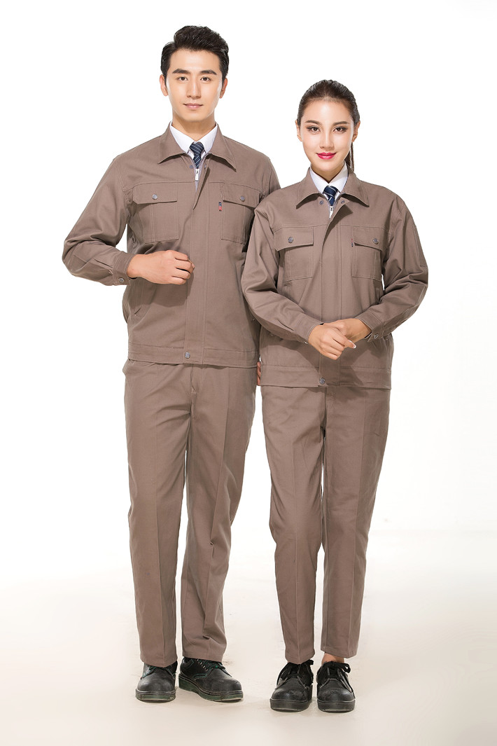 全棉紗卡卡其色拉鏈式工作服長袖套裝GZ-8022