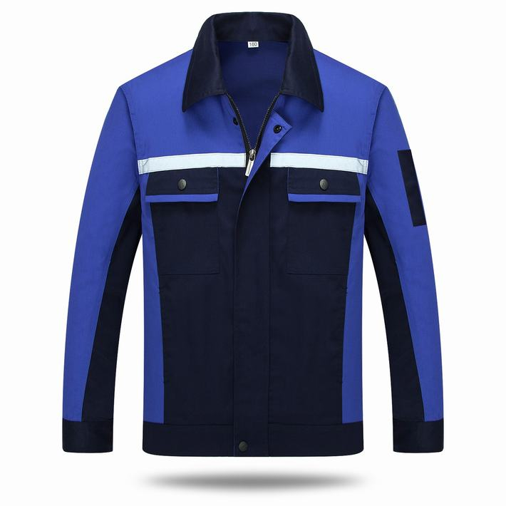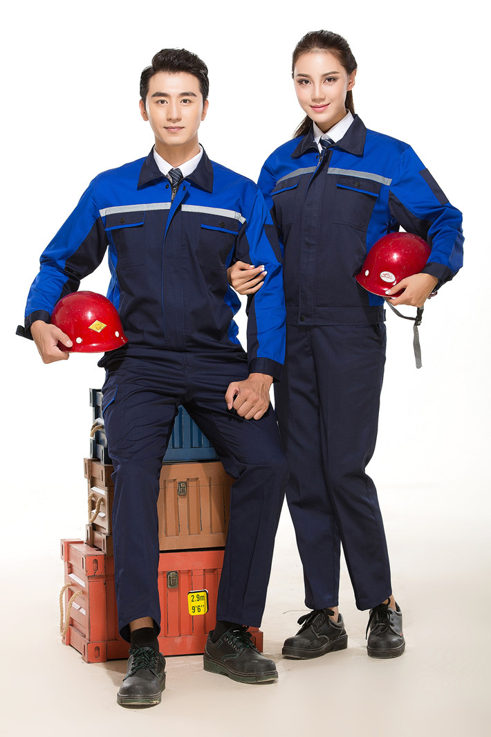 滌棉反光條藏青色拼藍色馬鞍山工作服GZ8011