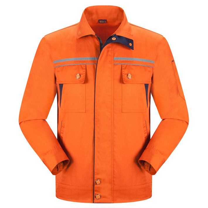 滌棉桔黃色立領拼色拉鏈式反光條工作服長袖套裝GZ-8024
