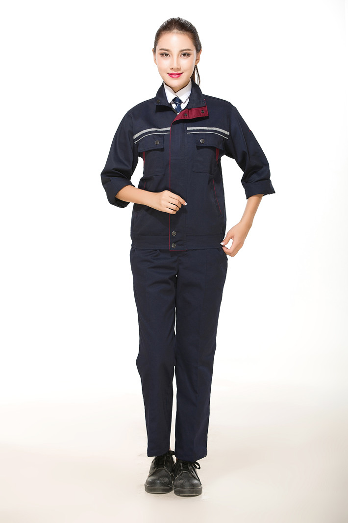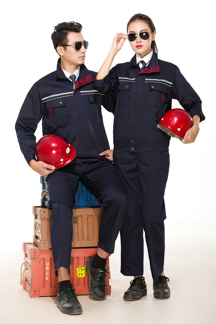 滌棉藏青色立領拼色拉鏈式反光條工作服長袖套裝GZ-8026