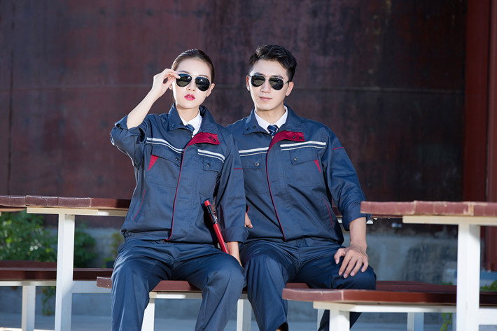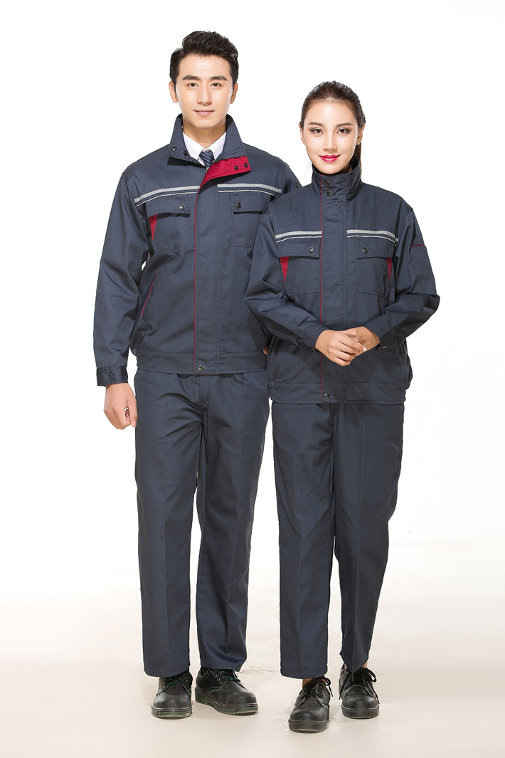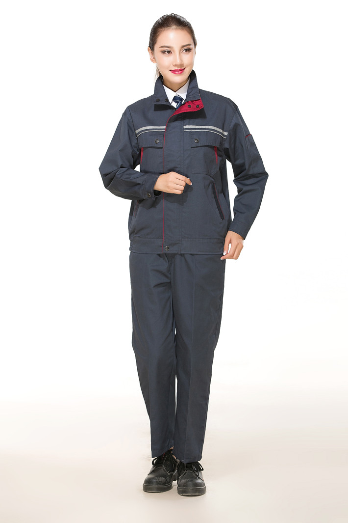 滌棉深灰色立領(lǐng)拼色拉鏈?zhǔn)椒垂鈼l工作服長(zhǎng)袖套裝GZ-8029