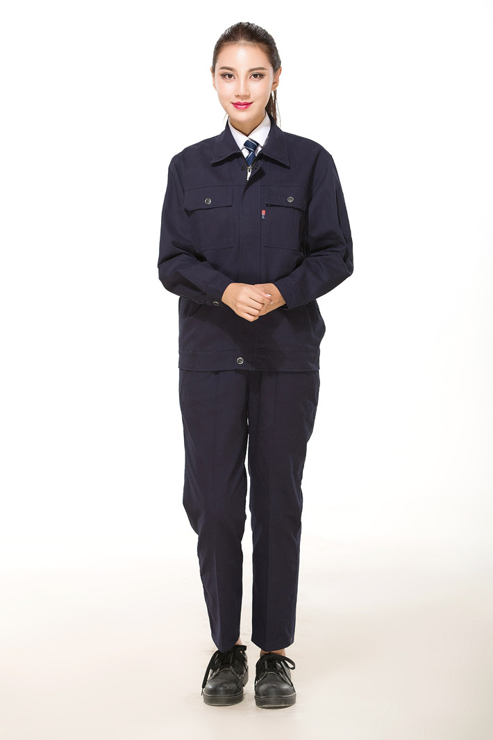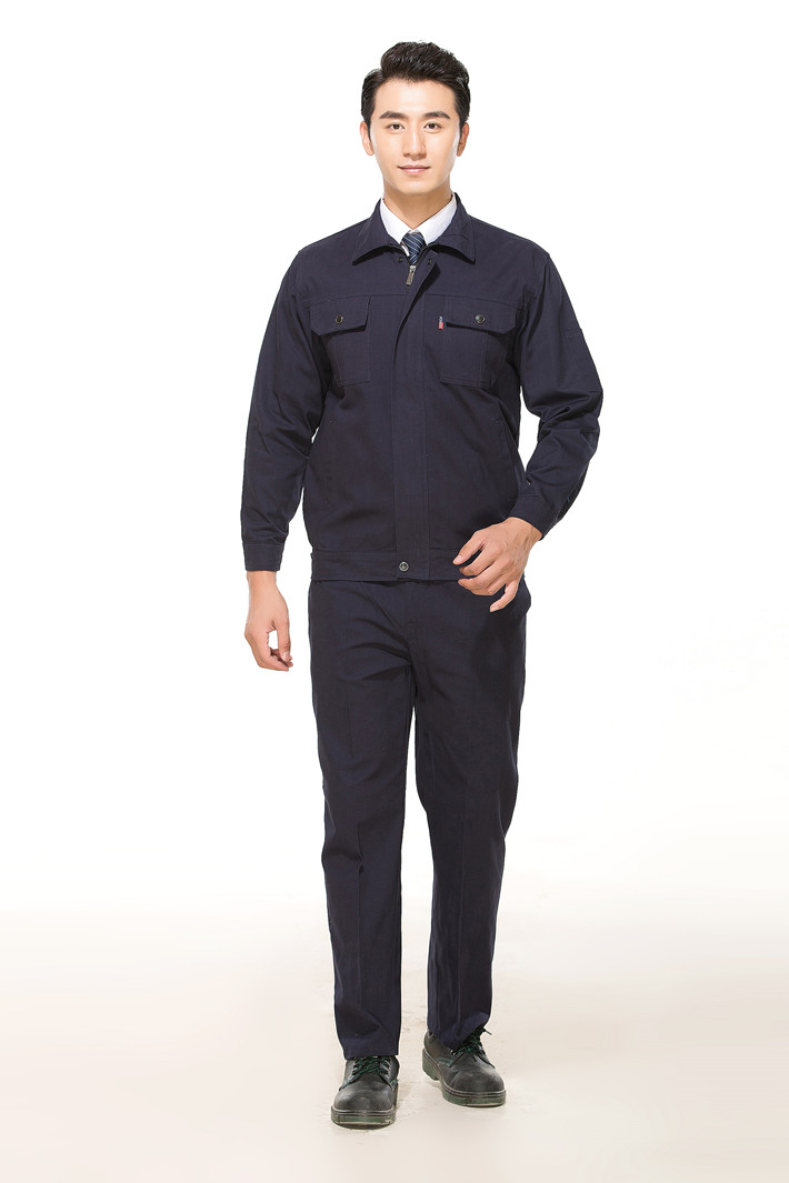全棉紗卡藏青色拉鏈式工作服長袖套裝GZ-QM8021