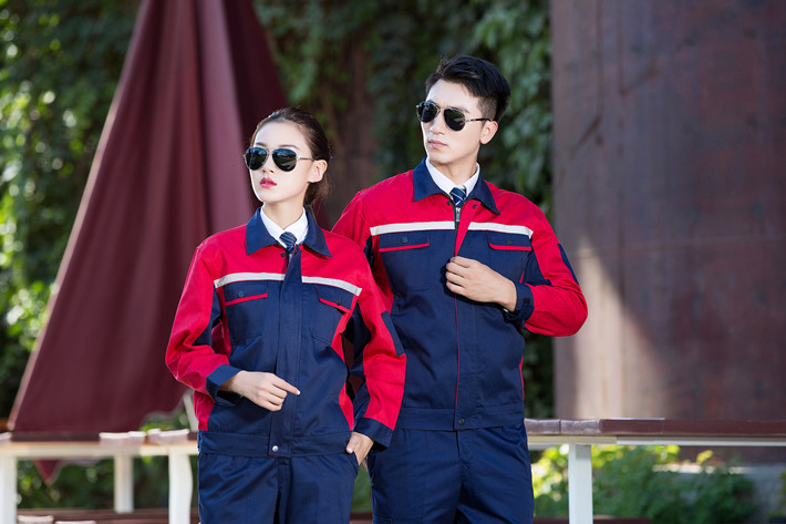 滌棉藏青色色拼紅色工作服套裝GZ-DM8012