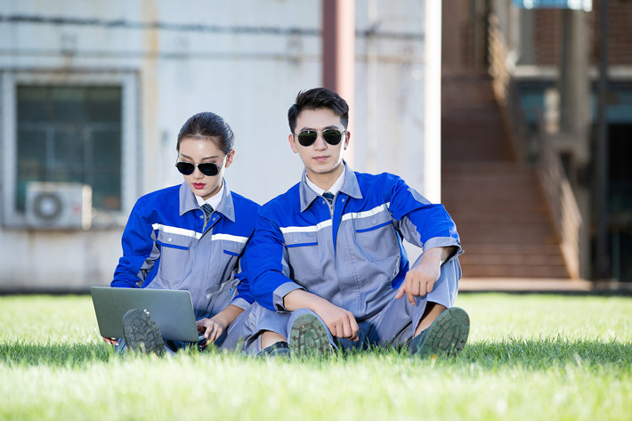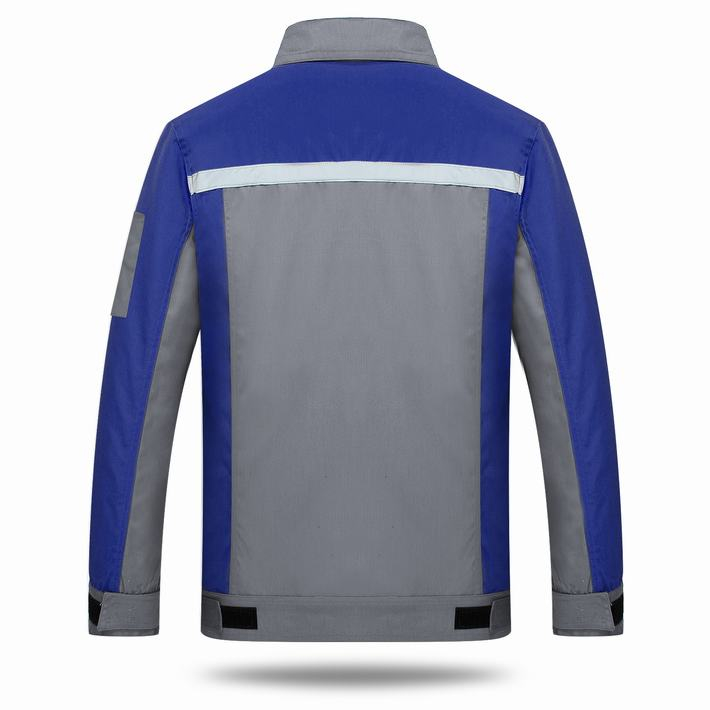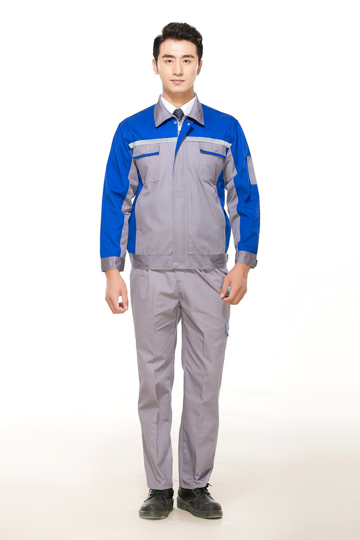 滌棉灰色拼藍色反光條工作服套裝GZ-DM8013