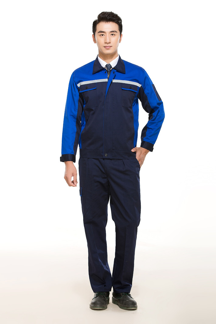滌棉藏青色拼藍色反光條工作服套裝GZ-FGT8011
