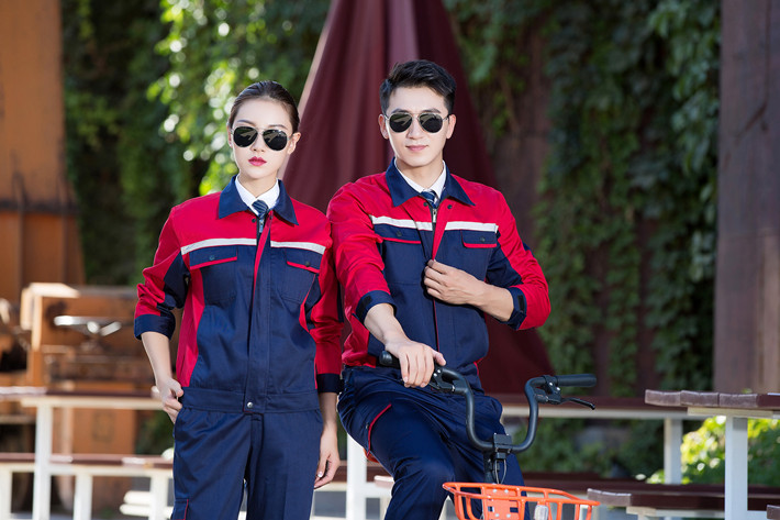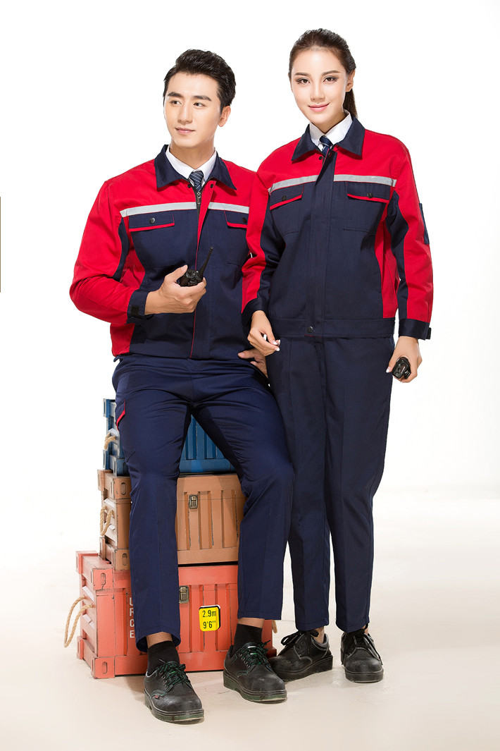 滌棉藏青色色拼紅色反光條工作服套裝GZ-FGT8012