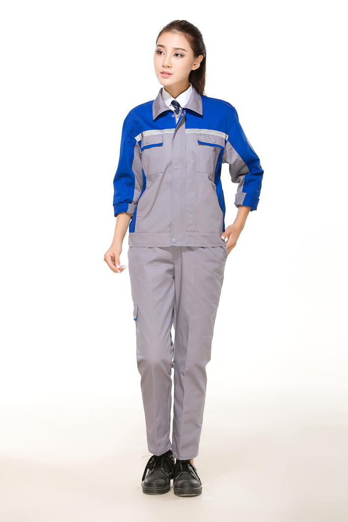滌棉灰色拼藍色反光條工作服套裝GZ-FGT8013