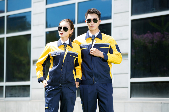 滌棉藏青色拼黃色反光條工作服長袖套裝GZ-FGT8015