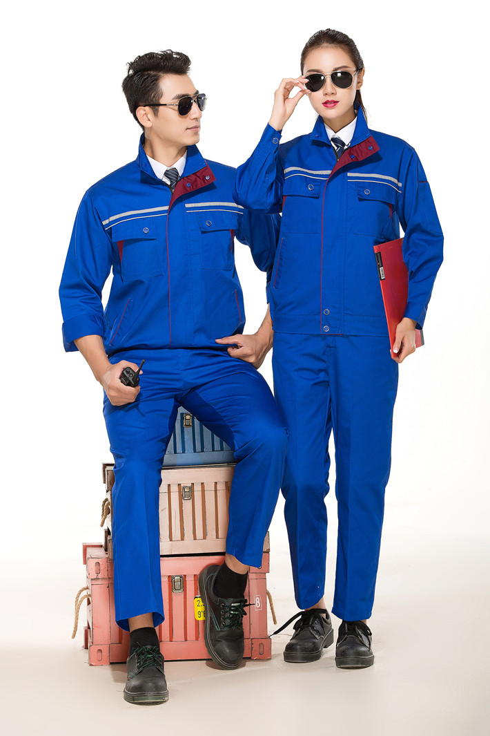 滌棉寶藍色立領拼色拉鏈式反光條工作服長袖套裝GZ-FGT8025