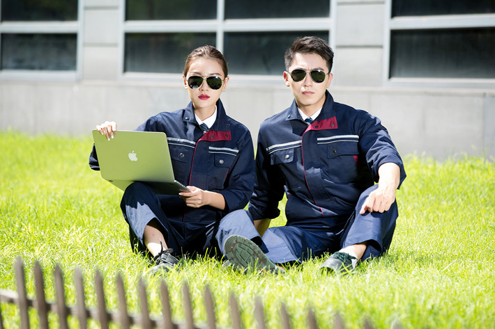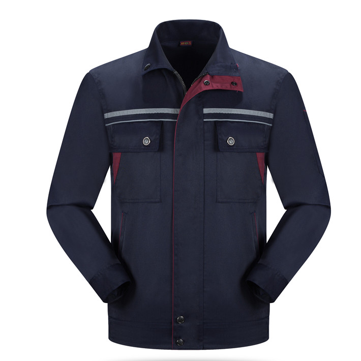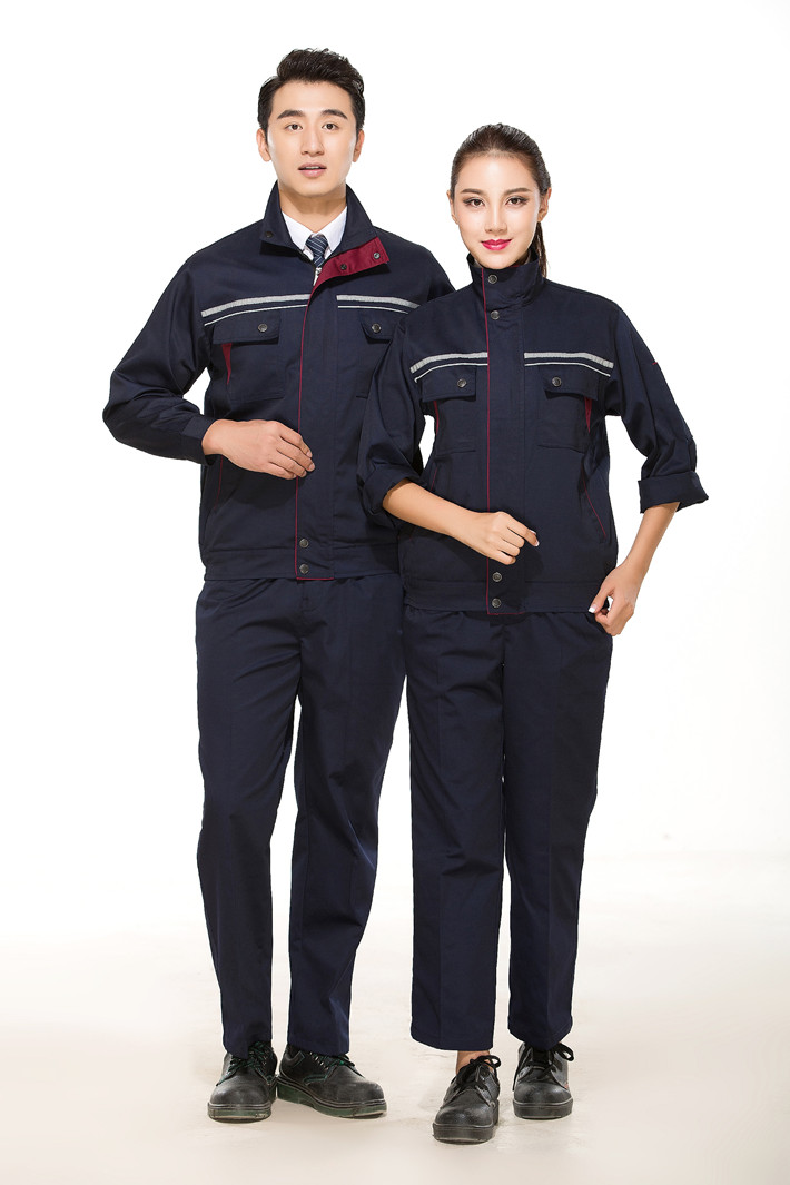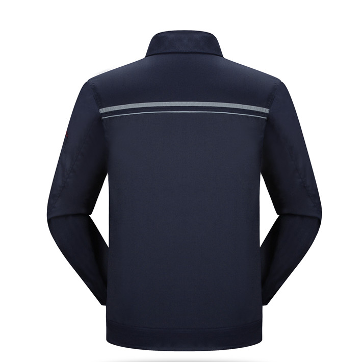 滌棉藏青色立領拼色拉鏈式反光條工作服長袖套裝GZ-FGT8026