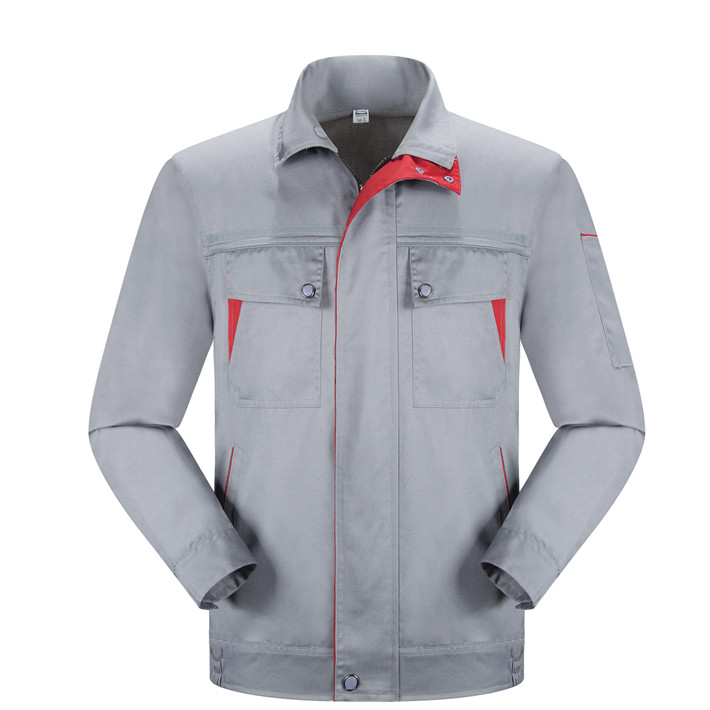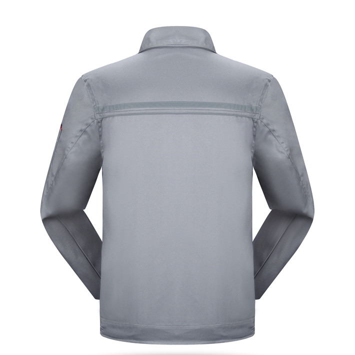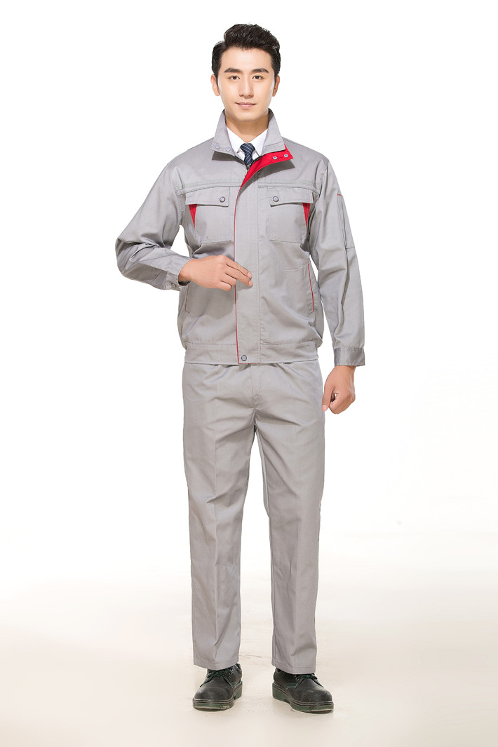 滌棉淺灰色立領(lǐng)拼色拉鏈?zhǔn)椒垂鈼l工作服長(zhǎng)袖套裝GZ-FGT8027