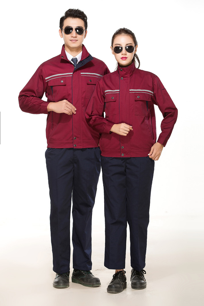 滌棉棗紅色立領拼色拉鏈式反光條工作服長袖套裝GZ-FGT8028