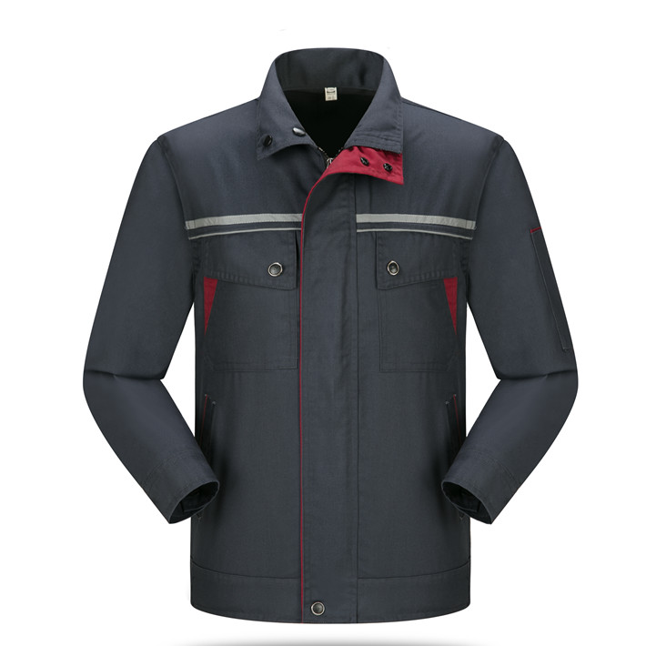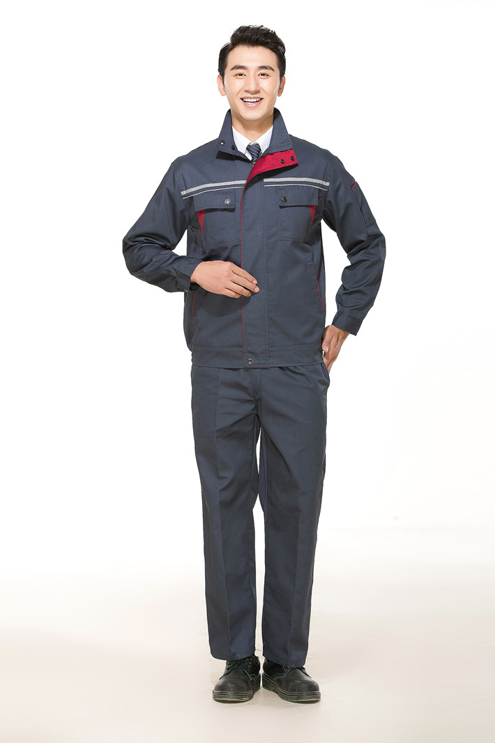 滌棉深灰色立領(lǐng)拼色拉鏈?zhǔn)椒垂鈼l工作服長袖套裝GZ-FGT8029