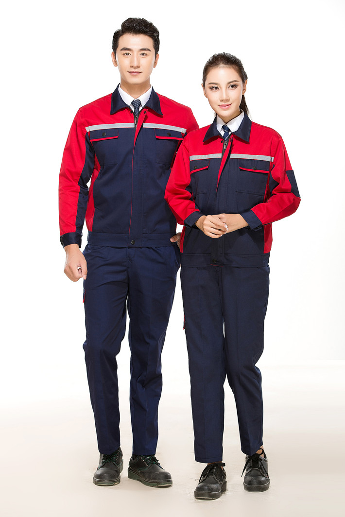 合肥工作服廠家,定做合肥工作服款式藏青色色拼紅色GZ-8012