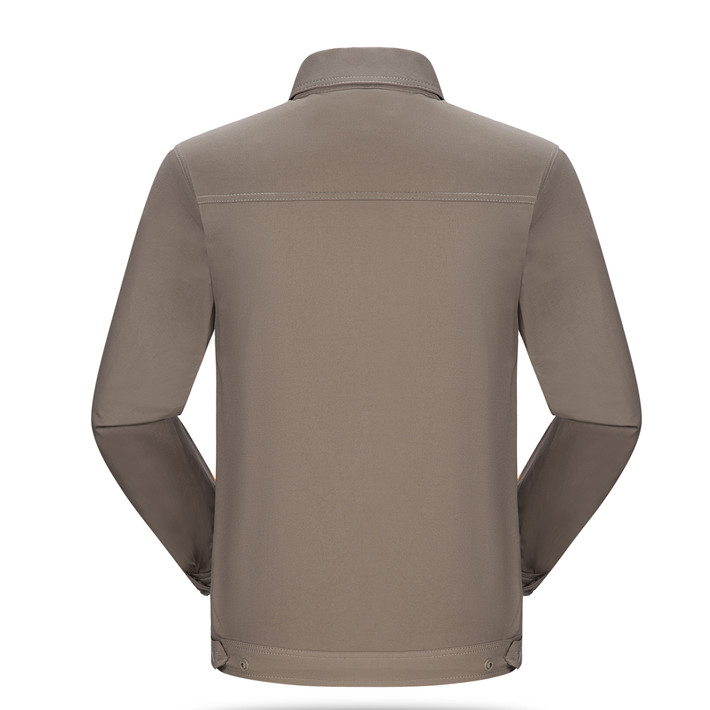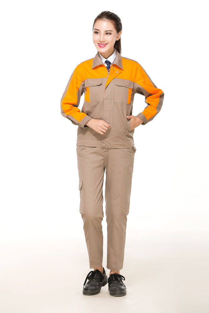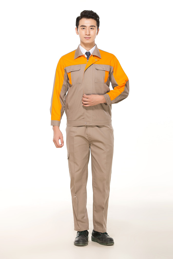 合肥全棉工作服定做款式灰色拼桔黃色長袖套裝GZ-8017